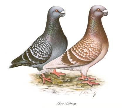 De Antwerps, zoals de duiven met de zwaardere snavel en wat meer wratontwikkeling kortheidshalve werden genoemd, zijn omstreeks 1870 in Engeland geïmporteerd en voor het eerst in 1870 op de Crystal Palace Show geshowd door Tegetmeier, waarna er in 1890 een speciaalclub van de Antwerp werd opgericht.